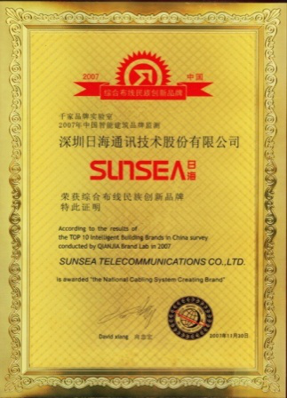 2007年11月29日~30日,Huatihui公司智能综合布线受邀前往上海光大会展中心酒店,参加由千家网筹办的“2007年第八届中国国际建筑智能化峰会暨颁奖典礼”,获得了“布线民族创新品牌”特别奖项。
